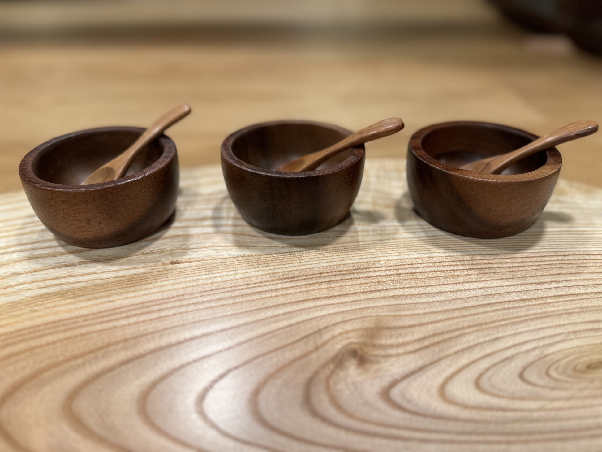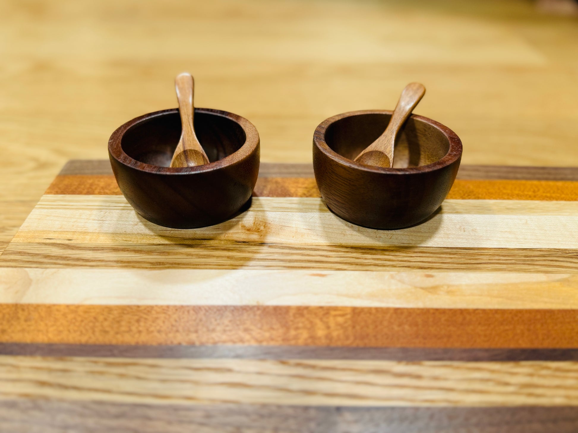 Ideal for serving dips and sauces, these exquisite wooden bowls add a touch of sophistication to your serving platter. Measuring 2.75 inches, they are the perfect size for your next get together. Hand wash only.
